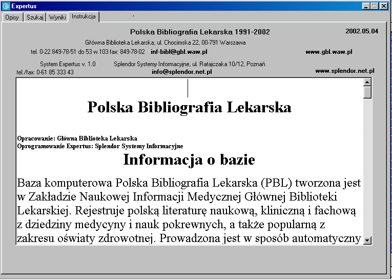 Użytkownik korzystający z bazy wydanej na płycie CD-ROM musi mieć zainstalowany