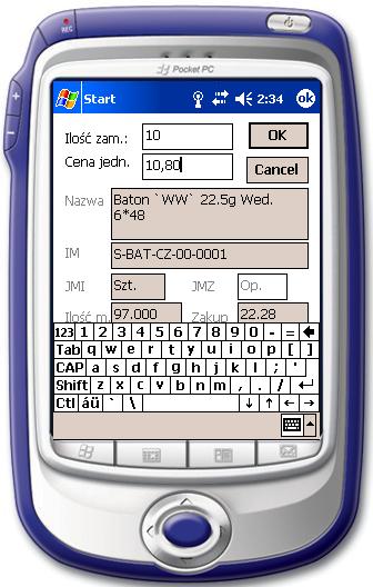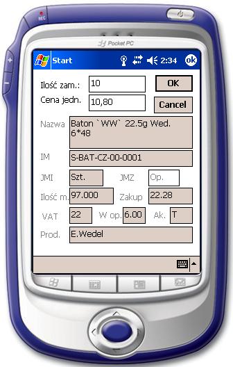 Obsługa systemu sprzedaży i zamówień poprzez aplikację PDA